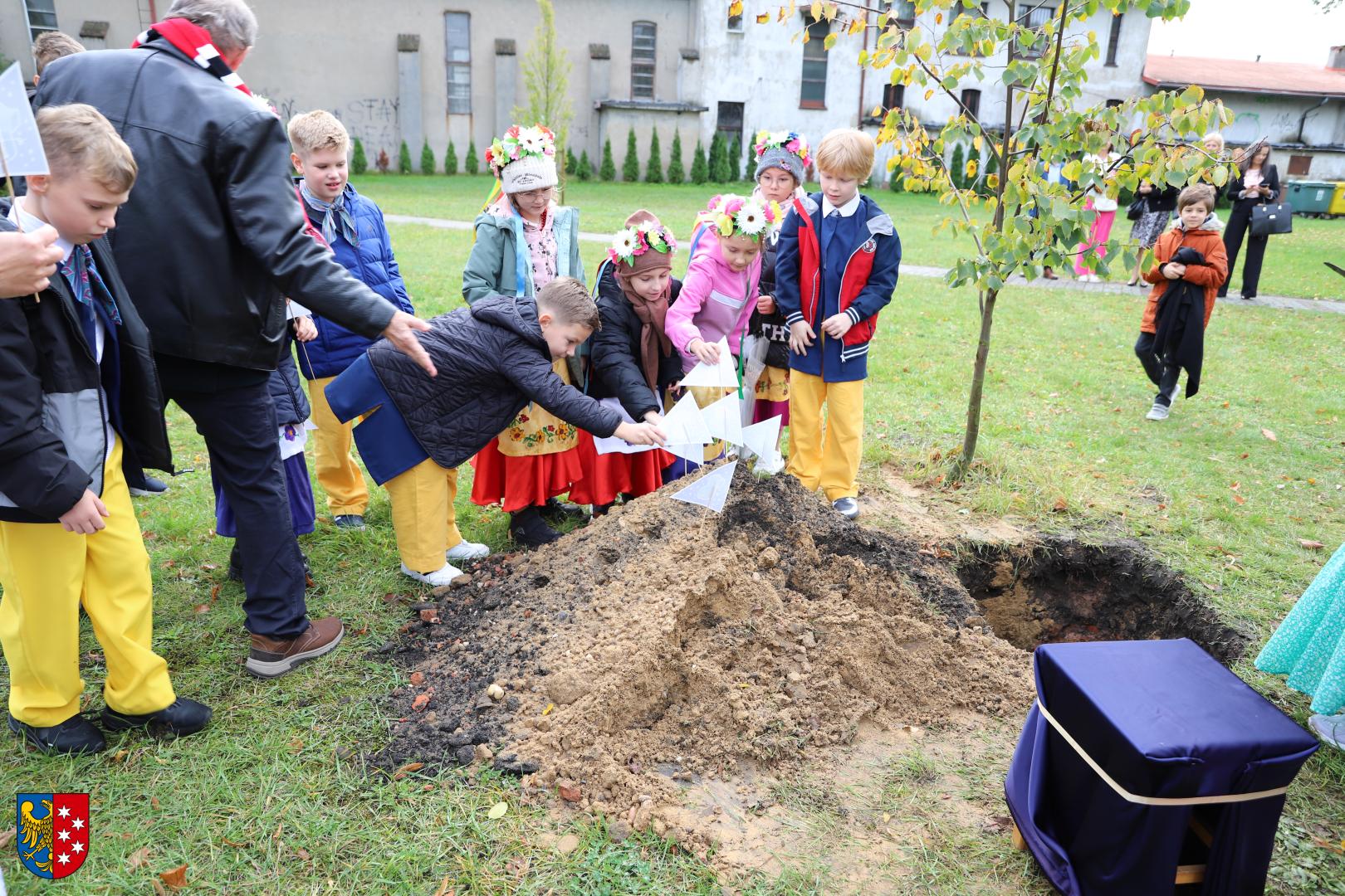 Na szkolnym stadionie miało miejsce symboliczne zapalenie znicza jubileuszowego, a przy „lipce Marysi” – pamiątkowym drzewie znajdującym się na terenie szkoły – została uroczyście zakopana Kapsuła Czasu z przesłaniami dla przyszłych pokoleń.