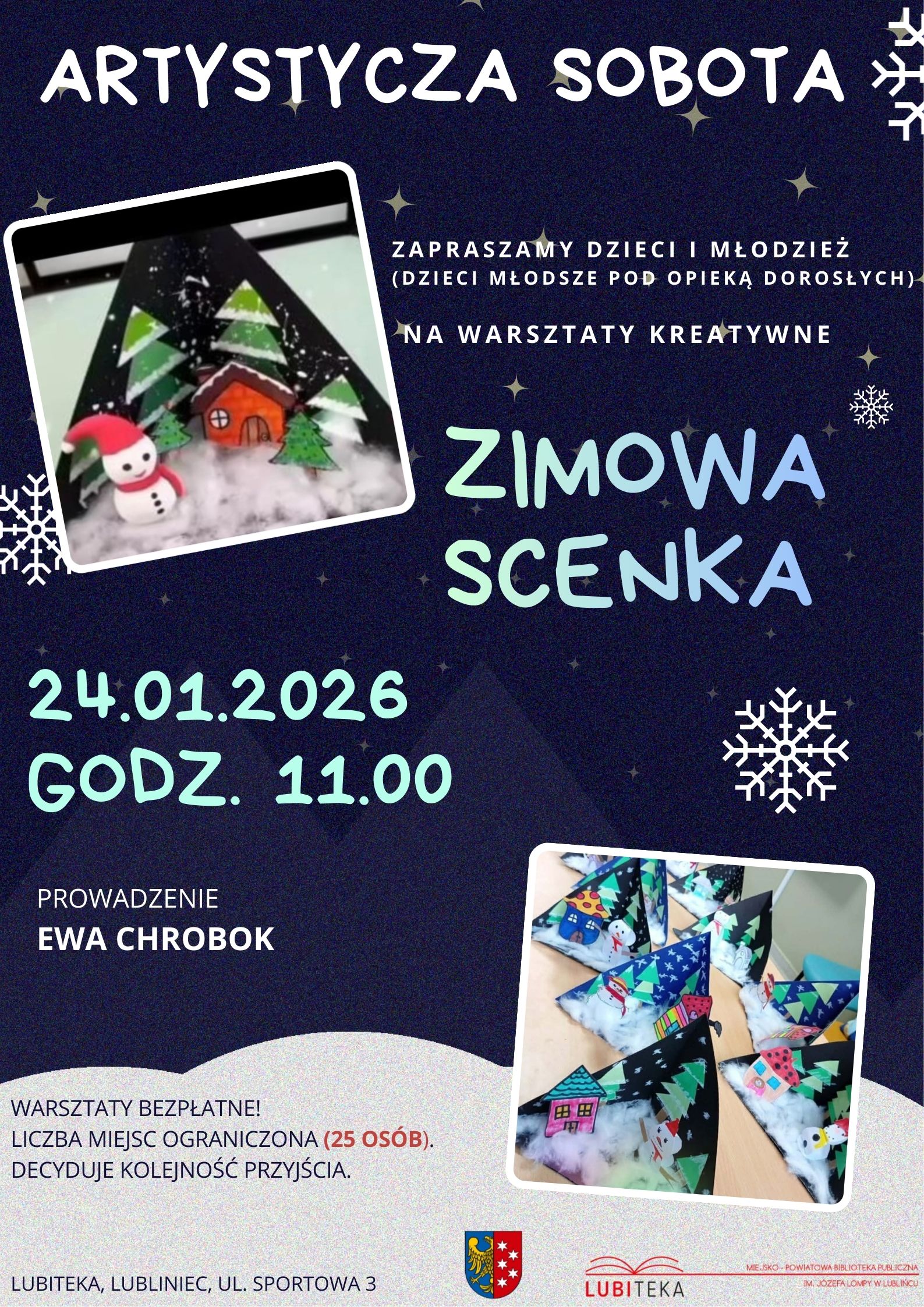 #ArtystycznaSobota #ZimowaScenka #Lubiteka #KreatywneDzieci #ZimaWSztuce #WarsztatyArtystyczne #Lubliniec #TwórczoRazem 🎨❄️📚