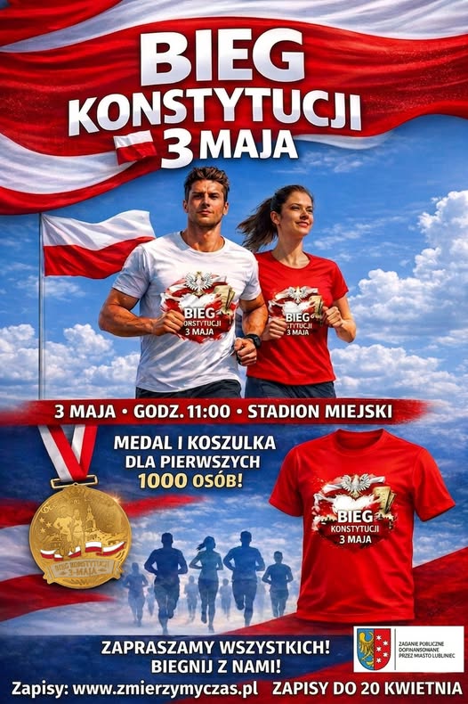 Wojskowy Klub Biegacza META Lubliniec we współpracy z Miastem Lubliniec zapraszają mieszkańców do udziału w pierwszej edycji Biegu Konstytucji 3-go Maja – wydarzenia o charakterze sportowo-patriotycznym.