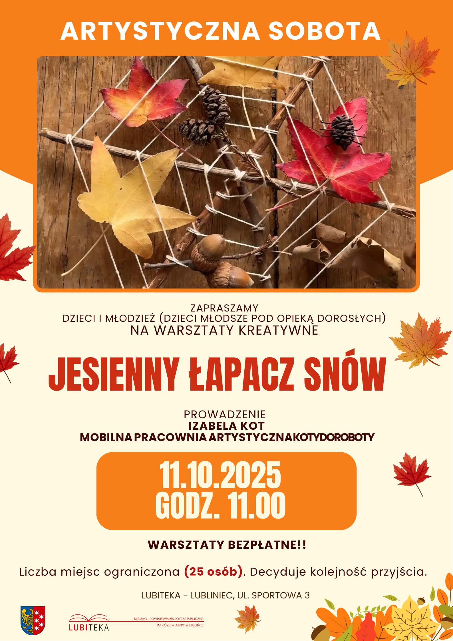 #ArtystycznaSobota #Lubiteka #JesiennyŁapaczSnów #WarsztatyDlaDzieci #KreatywnaJesień #Kotydoroboty #LubliniecTworzy #MagiaJesieni