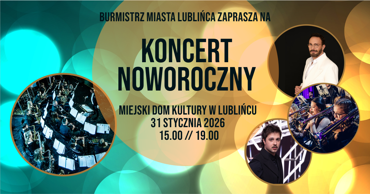 Burmistrz Miasta Lublińca zaprasza na ,,Koncert Noworoczny’’, który odbędzie się 31 stycznia 2026 roku o godzinie 15:00 oraz 19:00. Bilety w cenie 30 zł – bilet normalny oraz 20 zł – bilet z Lubliniecką Kartą Mieszkańca kupić będzie można od 14 stycznia od godziny 15:00. Bilety do nabycia w kasie MDK oraz online na stronie www.mdk.lubliniec.pl.