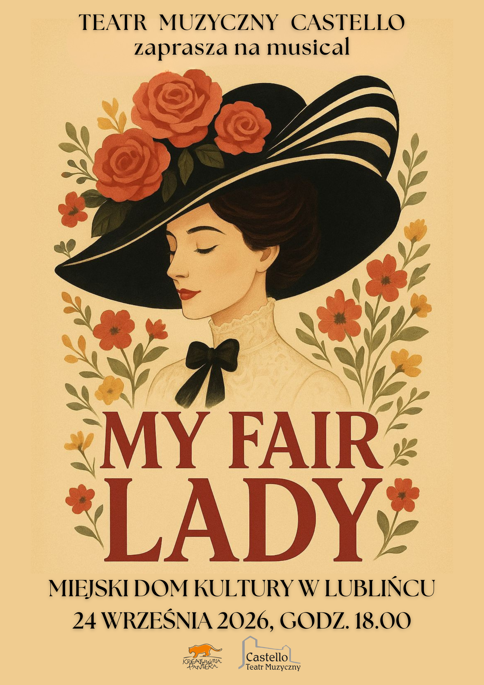 Zapraszamy na musical ,,My Fair Lady” w wykonaniu Teatru Muzycznego Castello, który odbędzie się 24 września o godzinie 18:00 w Miejskim Domu Kultury w Lublińcu. Bilety w cenie 130 złotych do kupienia w kasie MDK oraz online. Istnieje również możliwość zakupu biletu na miejsce na dostawce w cenie 69 złotych, bilety na dostawkę do kupienia wyłącznie w kasie MDK.