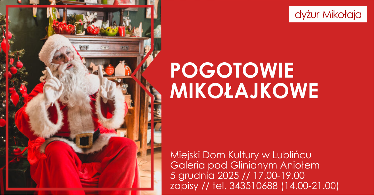 Popołudniu 5 grudnia zapraszamy do Galerii pod Glinianym Aniołem na Pogotowie Mikołajkowe. Spotkanie z tym wyjątkowym gościem jest dla najmłodszych zawsze niezapomnianym przeżyciem.