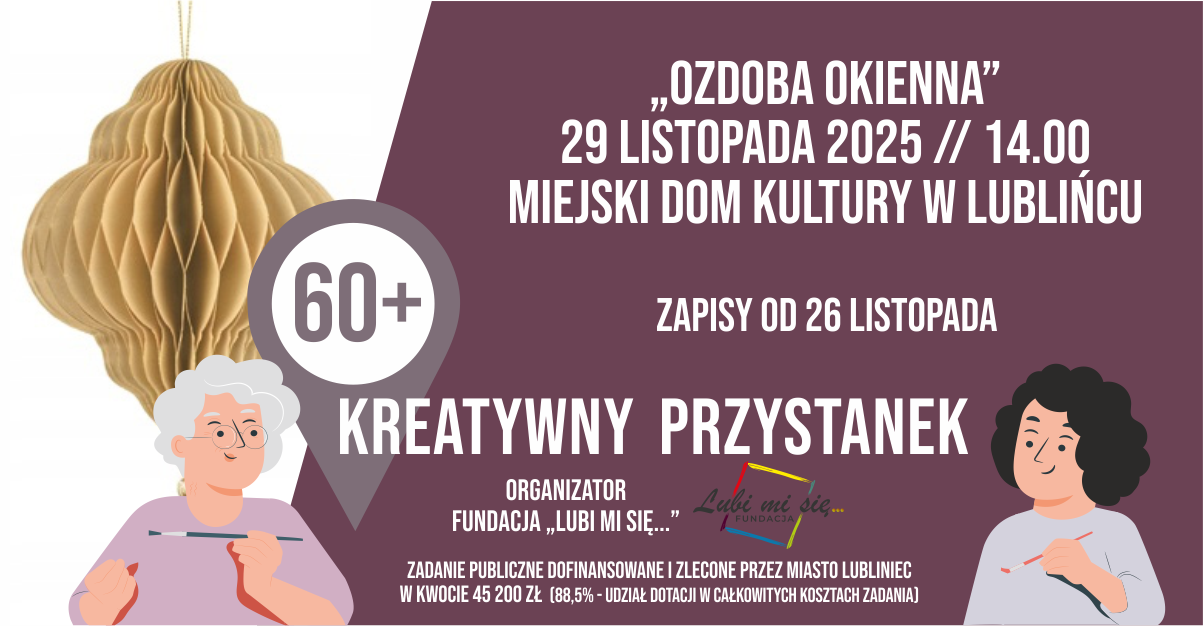 Twórcze spotkanie pod hasłem ,,Ozdoba okienna” odbędzie się w terminie 29 listopada 2025 roku o godzinie 14:00 w Miejskim Domu Kultury w Lublińcu.