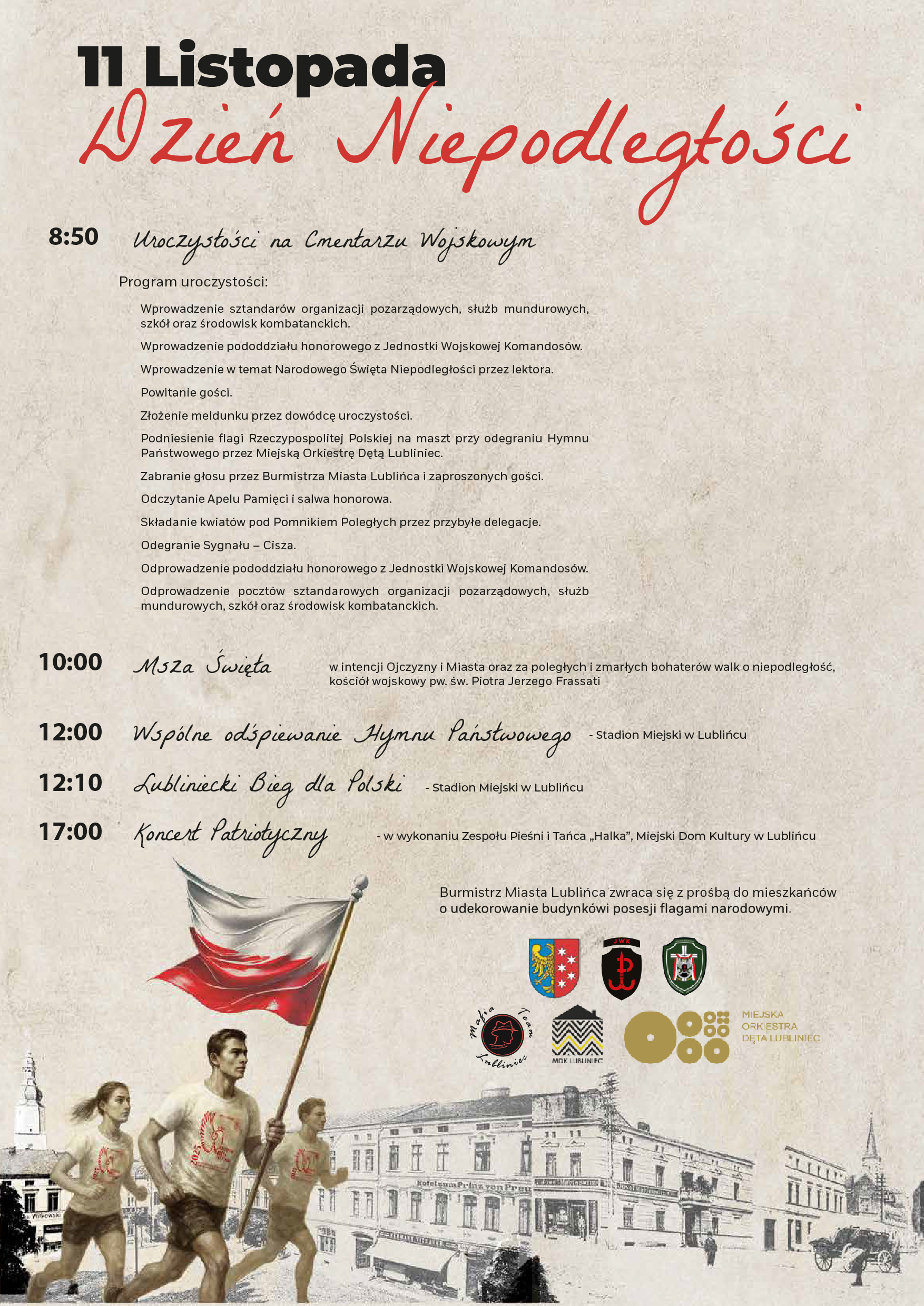 Burmistrz Miasta Lublińca serdecznie zaprasza do udziału w uroczystych obchodach Narodowego Święta Niepodległości, które rozpoczną się 11 listopada 2025 r. (wtorek) o godz. 8.50