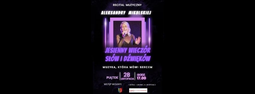 Miasto Lubliniec oraz Miejsko-Powiatowa Biblioteka Publiczna im. Józefa Lompy z ogromną radością zapraszają na wyjątkowy, pełen magii recital Aleksandry Mikulskiej – „Jesienny wieczór słów i dźwięków”