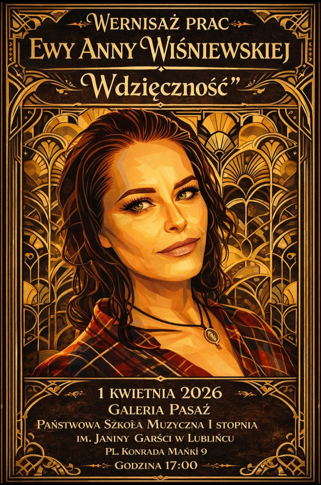 Zapraszamy na wernisaż wystawy prac - obrazów i rzeźb Ewy Anny Wiśniewskiej. Artystka urodziła się w Lublińcu i z nim była związana przez wiele lat.